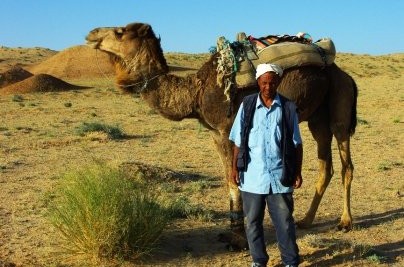 Durant cette balade, nous avons fait une pause au milieu de nulle part, ce qui, vous allez me dire, n’est pas bien difficile en plein désert. Le soleil étant moins fort à cette heure-ci, j’ai voulu me mettre torse nu pour prendre quelques couleurs pendant que j’explorerais les environs. Et c’est là que les choses prennent une tournure inattendue et plutôt étrange. Mon guide, assis à côté de son dromadaire m’a alors dit que je pouvais carrément me mettre tout nu, qu’il n’y avait personne autour.